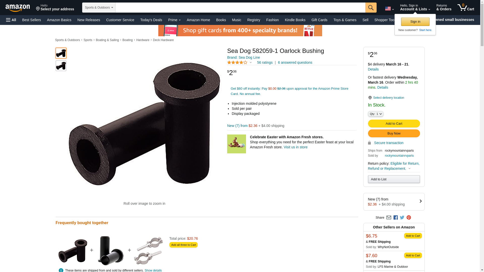 Sea Dog 582059-1 0.5 in. Oarlock Bushing, Black