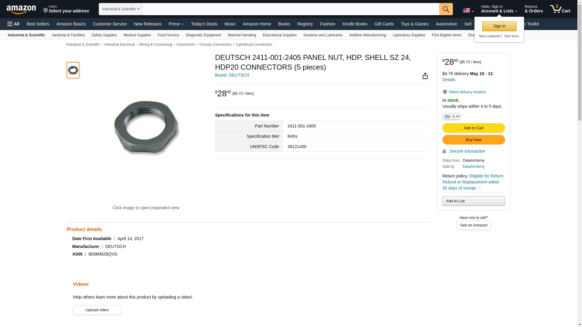 DEUTSCH 2411-001-2405 PANEL NUT, HDP, SHELL SZ 24, HDP20 CONNECTORS (5 pieces)
