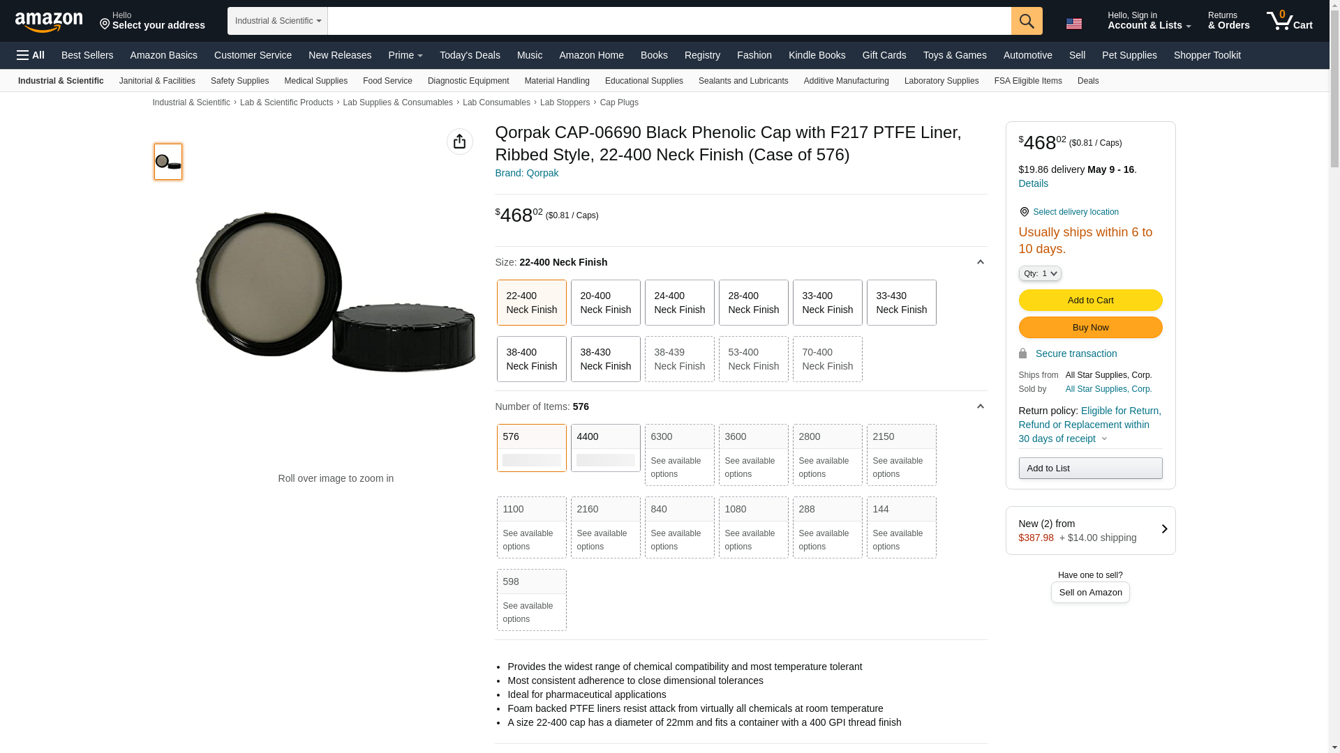 Qorpak CAP-06690 22-400 Black Ribbed Phenolic Cap with F217 and PTFE Liner (Pack of 576)