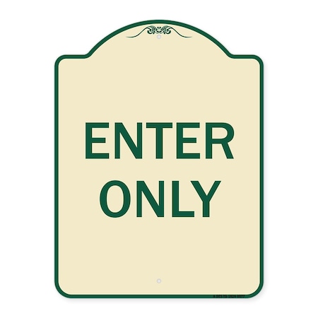 Designer Series Sign-Enter Only, Tan & Green Heavy-Gauge Aluminum