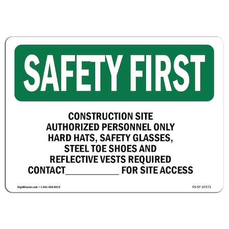 OSHA SAFETY FIRST Sign, Construction Site Authorized Personnel Only, 7in X 5in Decal