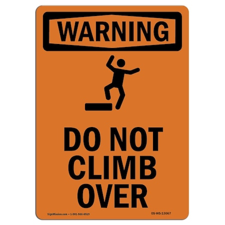 OSHA WARNING Sign, Do Not Climb Over W/ Symbol, 18in X 12in Decal