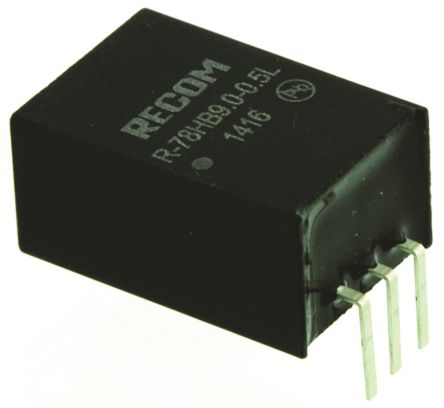 | Feature | <b>Price For:</b> Each <b>Manufacturer</b>: RECOM <b>Product Category</b>: Non-Isolated DC/DC Converters <b>RoHS</b>: <b>Product</b>: Non-Isolated / POL <b>Input Voltage</b>: 14 V to 72 V <b>Number of Outputs</b>: 1 Output <b>Output Voltage-Channel 1</b>: 9 V <b>Package / Case Size</b>: SIP-3 <b>Brand</b>: RECOM Power <b>Dimensions</b>: 11.5 mm x 8.5 mm x 17.5 mm <b>Height</b>: 17.5 mm <b>Length</b>: 11.5 mm <b>Packaging</b>: Tube <b>Series</b>: |