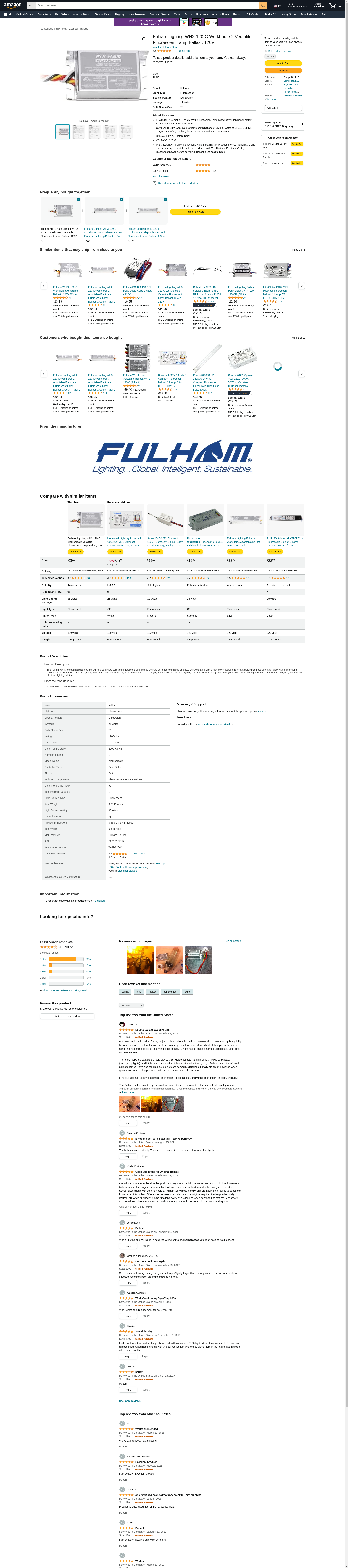 Product Description The Fulham WorkHorse 2 adaptable ballast will help you make sure your fluorescent lamps shine bright to enlighten your home or office. Lightweight but with a high-power factor, this instant start lighting equipment will work with multiple lamp configurations. Fulham Co., inc. is a global, intelligent, and sustainable organization committed to bringing you the best in electrical lighting solutions. Fulham is a global, intelligent, and sustainable organization committed to bringing you the best in electrical lighting solutions. From the Manufacturer WorkHorse 2 - Versatile Fluorescent Ballast - Instant Start - 120V - Compact Model w/ Side Leads