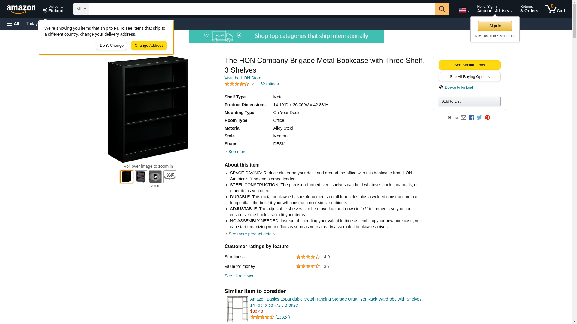 HON Metal Bookcase, 3 Shelves, 34-1/2w x 12-5/8d x 41h, Black