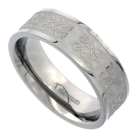 Titanium 7mm Wedding Band Celtic Knot Ring Flat Brushed Finish Background Comfort Fit, sizes 7 - 14