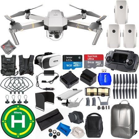 BUNDLE INCLUDES <br />DJI Mavic Pro Platinum Fly More Combo - Platinum <br />SanDisk Ultra 64GB Ultra Micro SDXC UHS-I/Class 10 Card up to 80MBs with Adapter - SDSQUNC-064G-GN6MA <br />ULTIMAXX MAVIC LENS HOOD- BLACK <br />ULTIMAXX High Speed SD/SDHC/Micro SD Reader/CARD READER <br />ULTIMAXX Landing Pad For Mavic (50cm/20in) <br />ULTIMAXX MAVIC CAP / GIMBAL STABILIZER CLR <br />ULTIMAXX Mavic Landing Gear - Grey <br />ULTIMAXX MAVIC 8331 F LOW NOISE PROPS (4) - Gold x2 <br />ULTIMAXX Mavic Prop Guard - Grey <br />ULTIMAXX MAVIC PRO RANGE EXTENDER / BOOSTER <br />ULTIMAXX Mavic Remote Controller Extender for Tablets/Phones <br />ULTIMAXX LARGE REMOTE SUNSHADE FOR MAVIC/P3-4/OSMO <br />ULTIMAXX Microfiber Cleaning Cloth <br />ULTIMAXX DRONE VEST STRAP <br />ULTIMAXX VR Goggles <br />ULTIMAXX 7 PC FILTER KIT FOR MAVIC <br />ULTIMAXX HARDSHELL BACKPACK FOR DJI MAVIC <br /> <br />MAVIC PRO PLATINUM <br />The Mavic Pro Platinum features a sleek design and compact body that is both powerful and alluring. A new and improved 30-minute flight time coupled with 60% noise power reduction makes the Mavic Pro Platinum DJI?s best portable drone yet. <br /> <br />Enhanced Endurance, Quieter Flight <br />Aircraft noise has been reduced by up to 4dB* (60% noise power) and <br />extended flight time to 30 minutes with new FOC sinusoidal driver ESCs <br />and 8331 propellers for a quieter, more enjoyable flight experience. <br /> <br />FLY FURTHER <br />Inside the Mavic?s pocket-sized remote controller is DJI?s brand new OcuSync transmission technology, with a range of 4.3mi (7km)*, HD 720p long range and Full HD 1080p short range video streaming. <br />*Unobstructed, free of interference, when FCC compliant. <br /> <br />NO BUMPS AND SCRAPES <br />An unprotected drone could hit obstacles during long distance flight or when descending from an inadequate height in Return to Home mode. The Mavic uses FlightAutonomy technology to sense obstacles up to 49ft (15m) away and allows the Mavic to bypass them or brake to hover, reducing accidents. <br /> <br />PRECISION HOVER <br />Satellite positioning can only help a drone hover in an unobstructed outdoor area free of interference. Without satellites, the drone will not be able to position and become susceptible to drifting. However, with forward and downward vision sensors, the Mavic can hover precisely indoors or in places without GPS. <br /> <br />STAY FLYING LONGER <br />The Mavic is only 1/6th the size of the Phantom 4 but this reduction in size doesn't mean a reduction in flight time. The Mavic actually flies much longer than you would expect from its compact size. It is capable of reaching an absolute maximum flight time of up to 30 minutes and a maximum distance of 8mi (13km) due to its powerful, high-efficiency motors. <br /> <br />4K ULTRA HD VIDEO <br />Mavic supports 4K video at 30fps. No Electronic Image Stabilization is used, ensuring all footage is 4K. We have created a miniaturized, ultra-precise 3-axis gimbal for the Mavic, capable of stabilizing the camera even during high-speed motion for smooth video and sharp photos. <br /> <br />PHOTOS WITH ALTITUDE <br />Everyone loves a good photo. Whether you just want to take a snap or are building up your portfolio, the Mavic?s 12-megapixel camera with Adobe DNG RAW support is ready to shoot.