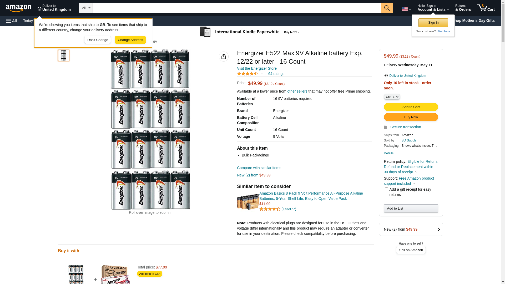 Energizer E522 Max 9V Alkaline battery Exp. 12/22 or later - 16 Count: Maxedbuy.com