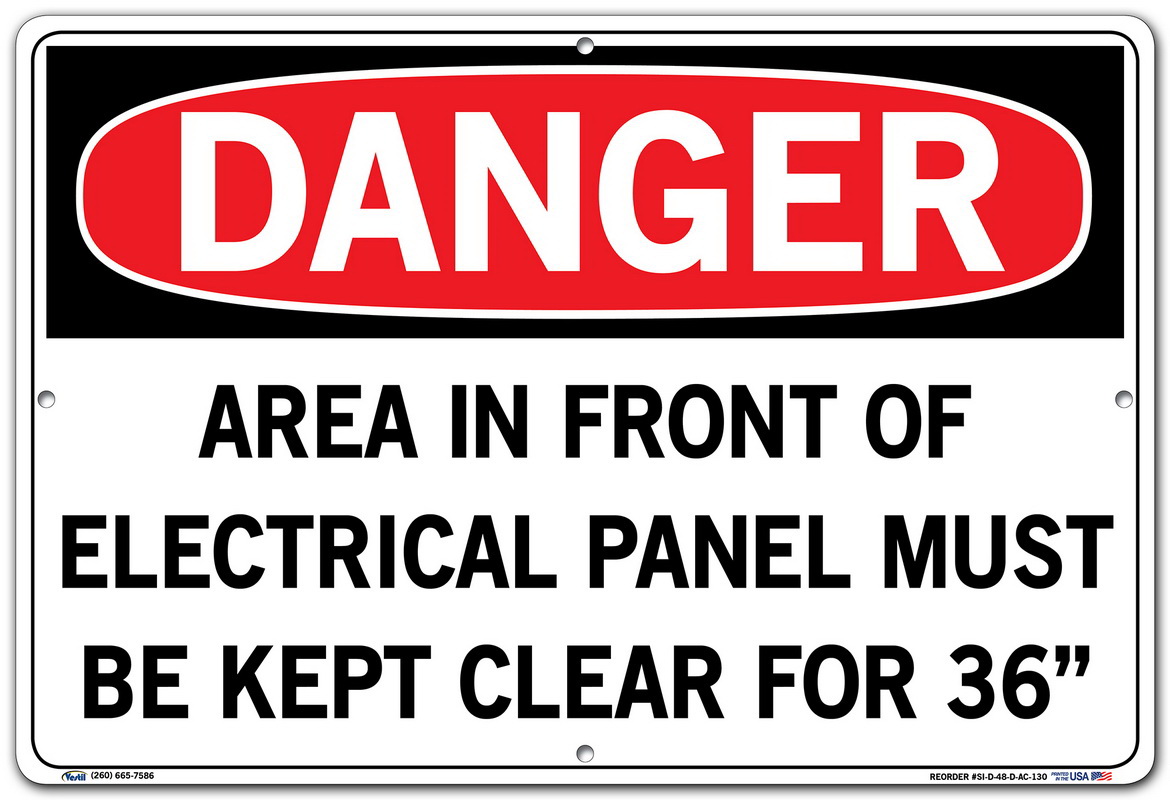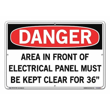 Vestil SI-D-48-D-AC-130 AREA IN FRONT OF ELECTRICAL PANEL MUST BE KEPT CLEAR Danger Sign, Aluminum Composite, 0.130" Overall Size, 18.5" W x 12.5" H