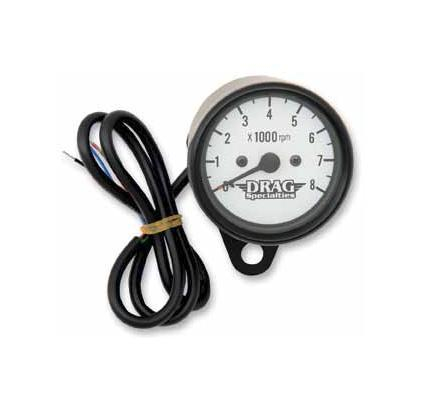 Drag Specialties 2.4in. Mini Electronic 8000 RPM Tachometer - White Face with Black Needle - 21-6930BNUDS1