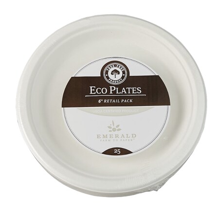 Emerald Tree-Free Farm to Paper Agricultural Waste Plate, 6", White, 25/Pack, 20 Packs/Carton (EMREC | Quill.com