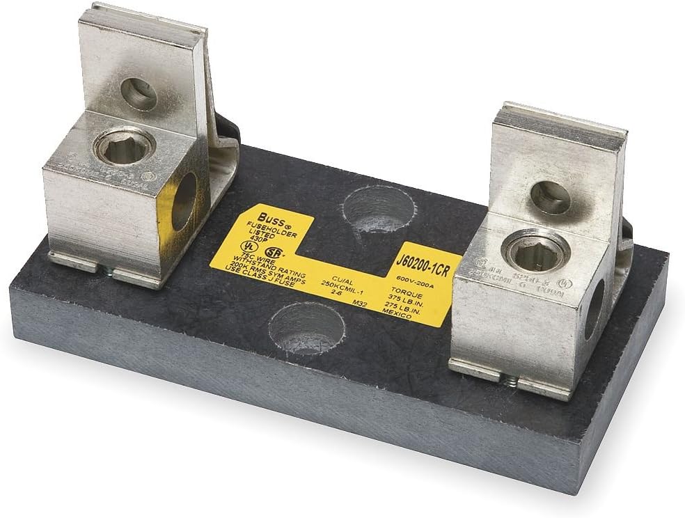 Part Number: 051712148375 <br> Part: Eaton/Bussmann Series J60200-1CR Class J Fuse Block, 1-Pole, 101-200A, 600V, Box Lug w/Retaining Clip <br> Class J Fuseblock, 1-Pole, 101-200 Amp, Box Lug Terminal w/Retaining Clip, 600V, Thermoplastic Base, For use with Bussmann LPJ & JKL Class J Fuses, 200,000A RMS Sym Withstand Rating <br> Mounting:Box Lug <br> Amps:200 <br> Volts AC:600 <br> Poles:1 <br> Type:Fuse Block <br> Also known as: 051712148375, BUSJ602001CR, Eaton/Bussmann Series, J60200-1CR, Fuse Blocks - Class J, Fuse Blocks, Holders & Accessories, Fuses & Accessories, Power Distribution, Bussmann, Cooper Bussman <br> Equivalent to: <ul></ul>