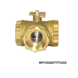 MPT355-BZ-T-TTT-L-025 Flo-Tite 1" Plated Brass Multi-Port Ball Valves, MPT 355/365