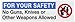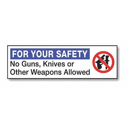 - Legend "FOR YOUR SAFETY No Guns Knives or Other weapons Allowed (Symbol)"