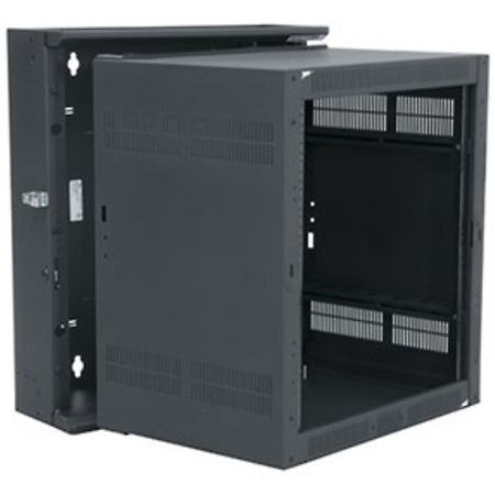Specify a DWR wall cabinet to provide easy rear access while keeping floor areas clear. This pivoting sectional wall cabinet is ideal for systems in both secured and non-secured areas.Features. Robust welded steel construction with Seismic certification. Patented Tool Free Quick-Mount system for center section mounting. Center section swing is reversible and can be both key locked and padlocked. Center section is keyed differently from optional front door for security. Designed for choice of active or passive coolingSpecifications. Finish Type - Textured Black Powder Coat. Dimension - 22.3 D x 23.4 W x 28.06 H in.. Capacity Weight US - 200. Rack Units - 12Technical Information. Rack rail Type - 10-32. Seismic Load Capacity - 140. UL Load Capacity - 200. Material - Steel. Mounting - Horizontal. Seismic Certified - 156. Compatible - Front Doors Top Fans Vent Blockers Vertical Power Distribution IP Power Control and Management Horizontal Power Distribution UPS Backup Power Systems Power Accessories Bus Bars Horizontal Cable Management Rack shelves Adjustable and Sliding Rack shelves Rack mount Storage Blank Panels Vent Panels Security Options Thermal Management Rack mount Computer Products Lighting Connector Panels Rack rail Hardware and Fasteners