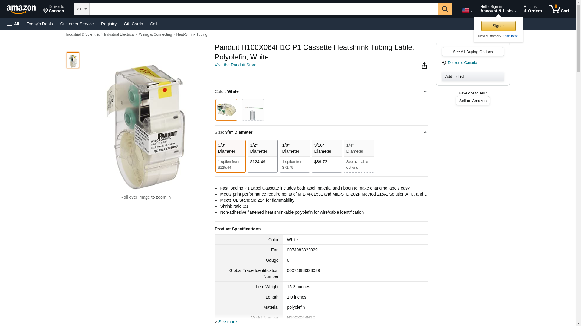 Panduit H100X064H1C P1 Cassette Heatshrink Tubing Lable, Polyolefin, White
