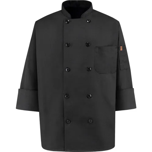 Chef Designs 10 Button-Front Chef Coat, Pearl Buttons, Black, Spun Polyester, XS