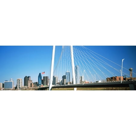Bridge with skyscrapers in the background Margaret Hunt Hill Bridge Dallas Texas USA was reproduced on the finest Canvas which captures all of the vivid colors and details of the original art. This museum quality Canvas Art was faithfully reproduced using ultra-precision print technology and fade-resistant archival inks on artist premium acid-free grade canvas. The overall size is 36 x 12 inches plus an additonal 1.5 inches of extra canvas on all 4 sides to allow for easy stretching and/or framing. This premium rolled Canvas Art is ready for stretcher bars or custom framing. <br /> <br /> <ul> <li>Brand New and Rolled and ready to stretch or frame</li> <li>Canvas Art Title: Bridge with skyscrapers in the background Margaret Hunt Hill Bridge Dallas Texas USA</li> <li>Canvas Size: 36.00 x 12.00 inches plus an additional 1.5 inches of extra canvas on all 4 sides to allow for easy stretching and/or framing</li> <li>Licensor: Panoramic Images</li> <li>Artist: Panoramic Images</li> </ul>