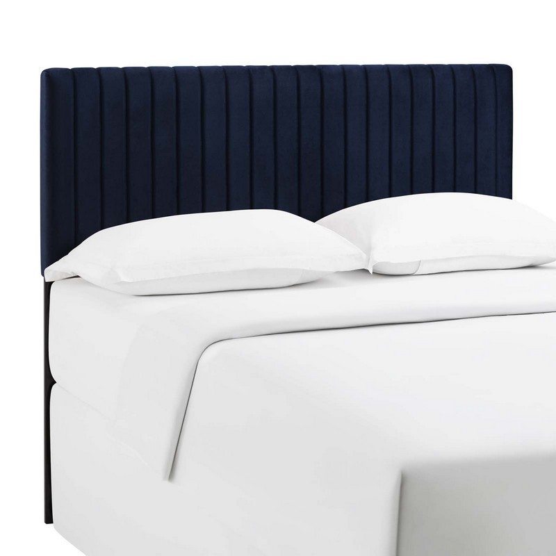 Modway Keira Channel Tufted Performance Velvet Upholstered Full / Queen Headboard in Midnight Blue