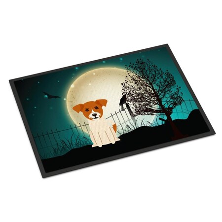 Caroline's Treasures BB2298MAT Halloween Scary Jack Russell Terrier Doormat 18x27 Front Door Mat Indoor Outdoor Rugs for Entryway, Non Slip Washable Low Pile, 18H X 27W