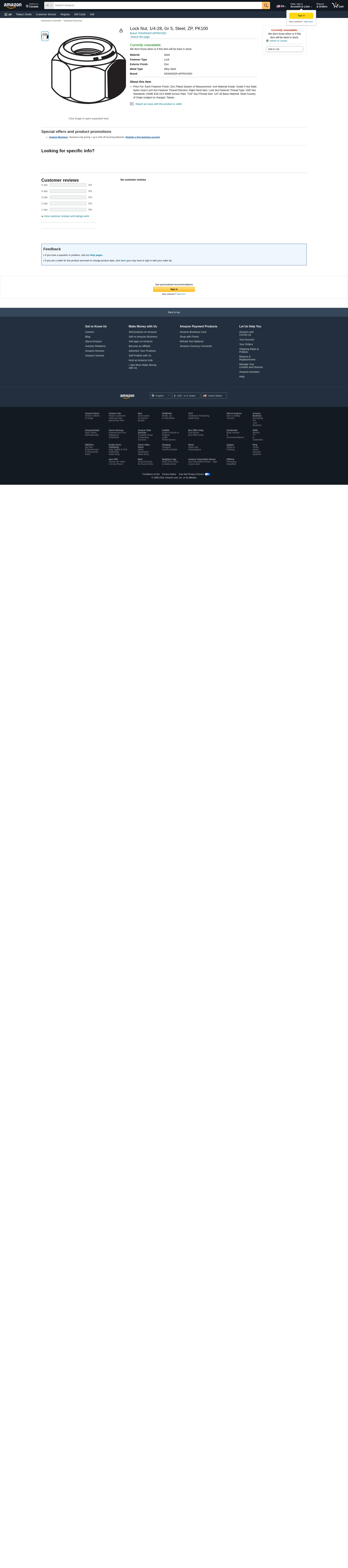 ' Lock Nut, Nut Style Nylon Insert Lock Nut, System of Measurement Inch, Steel, Fastener Finish Zinc Plated, Fastener Thread Direction Right Hand, Fastener Thread Type UNF, Dia./Thread Size 1/4 In.-28, Material Grade Grade 5, Width Across Flats 7/16 In., Nut Height 5/16 In., Nut Standards ASME B18.16.6, Package Quantity 100 '