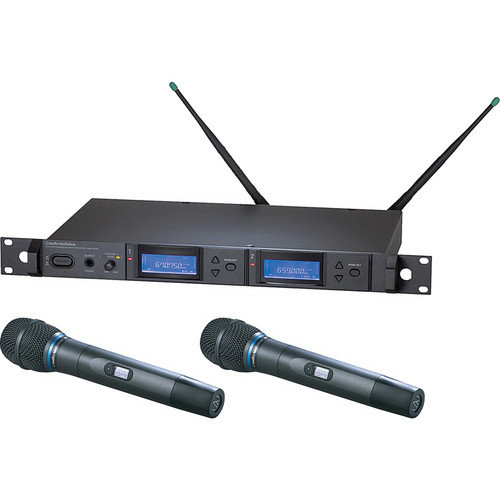 Audio TechnicaAEW-5255aC AEW-R5200 dual receiver and two AEW-T5400a handheld cardioid condenser microphone/transmitters (TV 25-30)