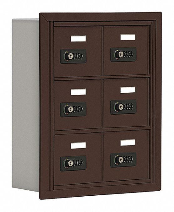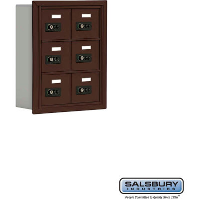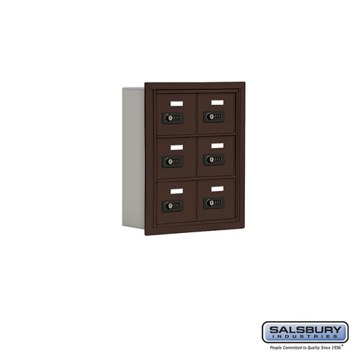 Cell Phone Storage Locker - 3 Door High Unit (5 Inch Deep Compartments) - 6 A Doors - Bronze - Recessed Mounted - Resettable Combination Locks