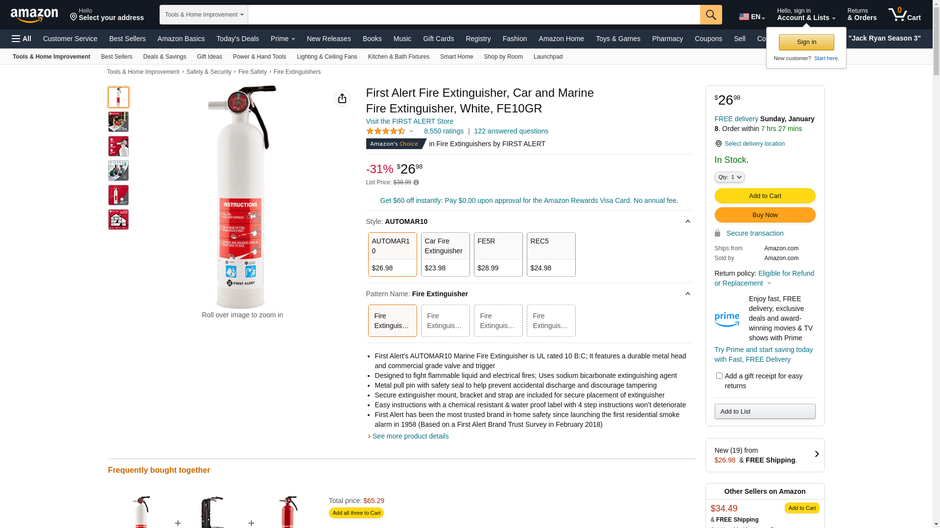 FIRST ALERT AUTOMAR10 Car and Marine Fire Extinguisher, FE10GR, UL RATED 10-B:C, White, 1-Pack
