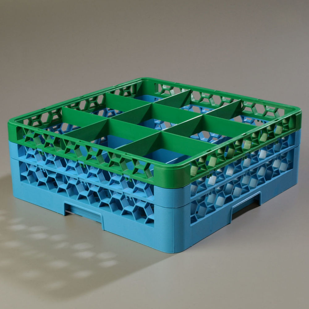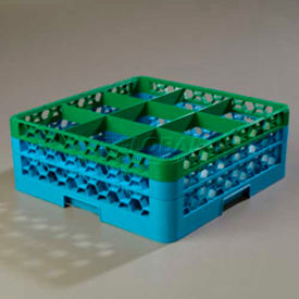 CFS RG9-2C413 OptiClean 9 Compartment Glass Rack with 2 Extenders, 7.12", Green-CFS Blue (Pack of 3)