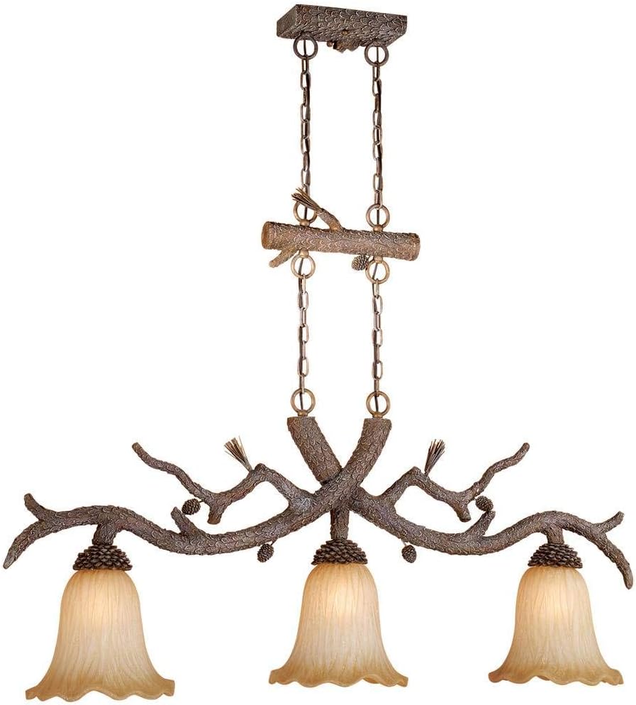 Vaxcel AS-PDD500PT Aspen - 50" Three Light Pendant, Pine Tree Finish with Brushed Amber Glass