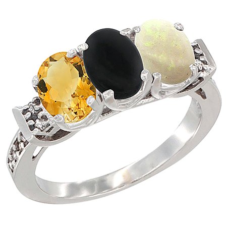 10K White Gold Natural Citrine, Black Onyx & Opal Ring 3-Stone Oval 7x5 mm Diamond Accent, sizes 5 - 10