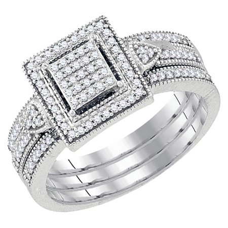 Bridal 10k White Gold Micro Pave Diamond Wedding Ring Set 0.33CT