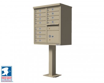 1570 12 Door Cluster Box Unit (CBU) in Sandstone Color for Tall pedestal Stucco Columns
