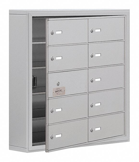 Salsbury Industries 19155-10ASK Cell Phone-Access Panel-5 Unit Surface Mounted-Keyed Locks with 5-Inch Diameter Compartments, Aluminum