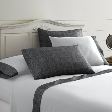 Amrapur, 1MFDENMG-CHR-QN, , 6 Piece Chambray Denim Microfiber Sheet Set Charcoal Queen