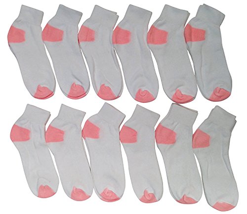 Ex-Cell 781k-4-6-pink-dz 12 Pair Childrens Low Cut Quarter Length Ankle Socks, White with Pink Heel & Toe - Size 4-6