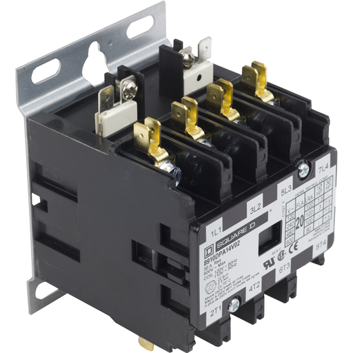 SQUARE D 8910DPA14V02 DEFINITE PURPOSE CONTACTOR (TYPE DPA) 20A 4-POLE 3-PHASE NON-REVERSING 1HP@115VAC - 2HP@230VAC 5HP@230VAC - 7.5HP@460/575VAC 120VAC@60HZ - 110VAC@50HZ 120A@230VAC - 100A@460VAC - 90A@575VAC OPEN | United Electric