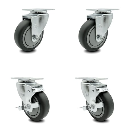 Thermoplastic Rubber Swivel Top Plate Caster Set of 4 with 4 Inch Gray Wheels - Includes 2 Swivel with Top Locking Brakes and 2 Swivel - 1000 lbs. Total Capacity - Service Caster Brand