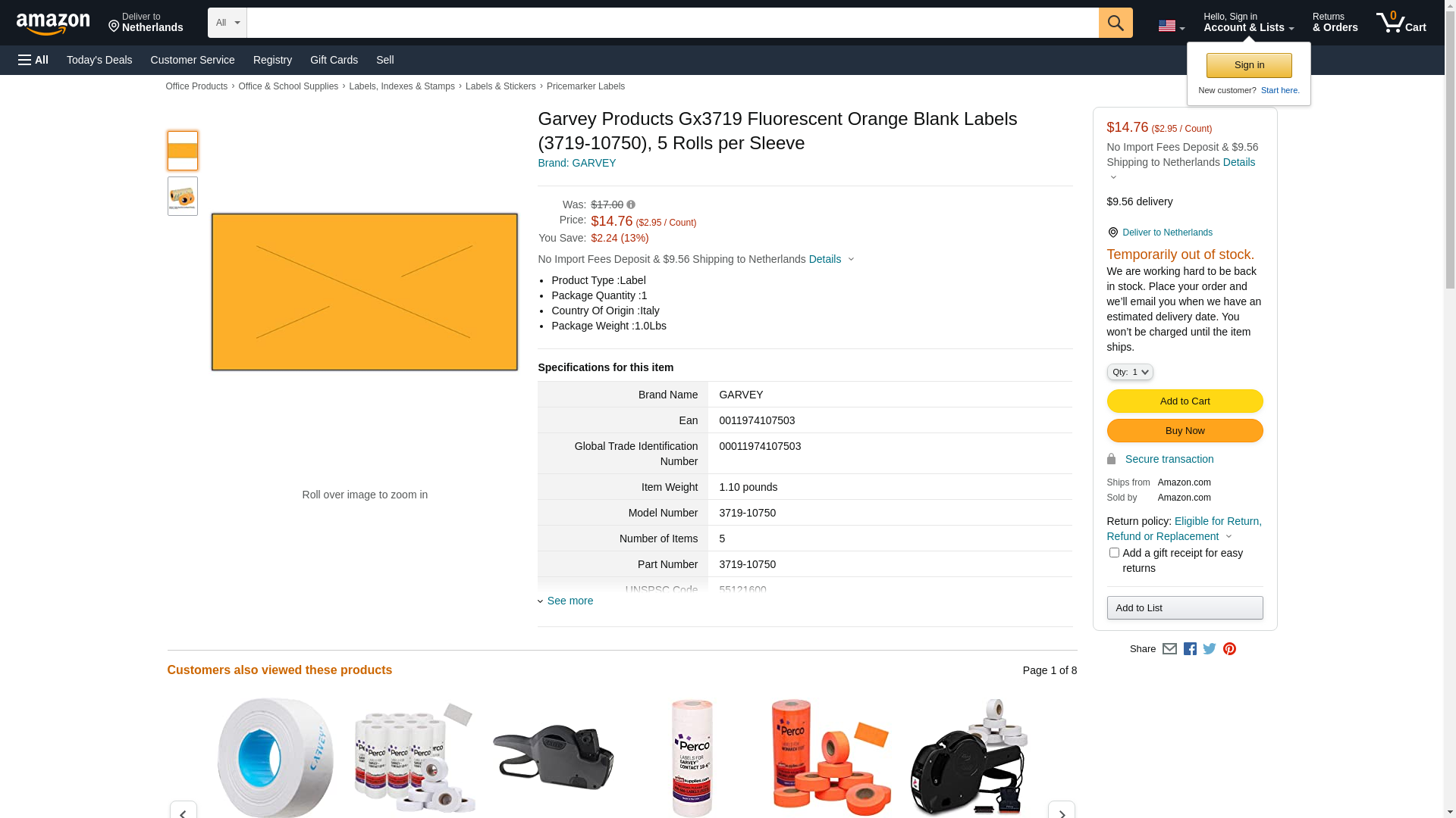 Order 3719-10750 by Garvey GX3719 Fluorescent Orange Label - US Mega Store