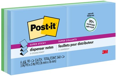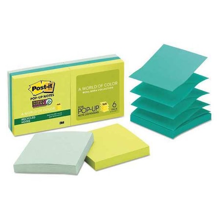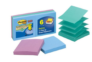 Post-it Recycled Super Sticky Pop-up Notes, 3" x 3", Oasis Collection, 90 Sheet/Pad, 6 Pads/Pack (R3 | Quill.com