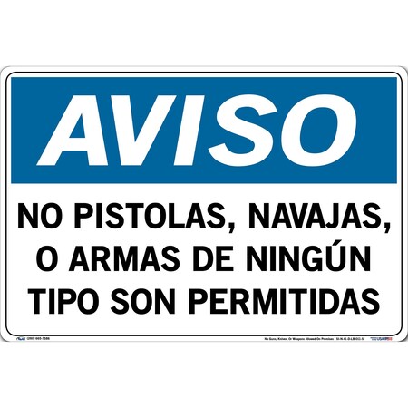 Vestil Notice SignSI-N-41-D-LB-011-S 41 18.5X12.5 Label/Decal.011 No Guns, Knives, Or Weapons Allowed On Premises NO PISTOLAS, NAVAJAS, O Armas DE NINGÚN TIPO Son PERMITIDAS