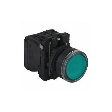 'Illuminated Push Button, 22mm, Momentary/Momentary, Type of Operator Flush Button, Basic Material Plastic, Plastic Head Material, 1NO/1NC Contact Form, Plastic Bezel, Color Green, Lamp Module Voltage 120VAC, Lamp Module Type Full Voltage, Lamp Type LED, Lamp Voltage 110 to 120VAC, Replacement Lamp Mfr. No. ZBVG3, Contact Rating 10A @ 600VAC, NEMA Rating 4, 4X, 13, IP Rating 65, 66, Standards EN/IEC 60947-1, EN/IEC 60947-5-1, EN/IEC 60947-5-4, EN/IEC 60947-5-5, UL 508, CSA C22-2 No 14'