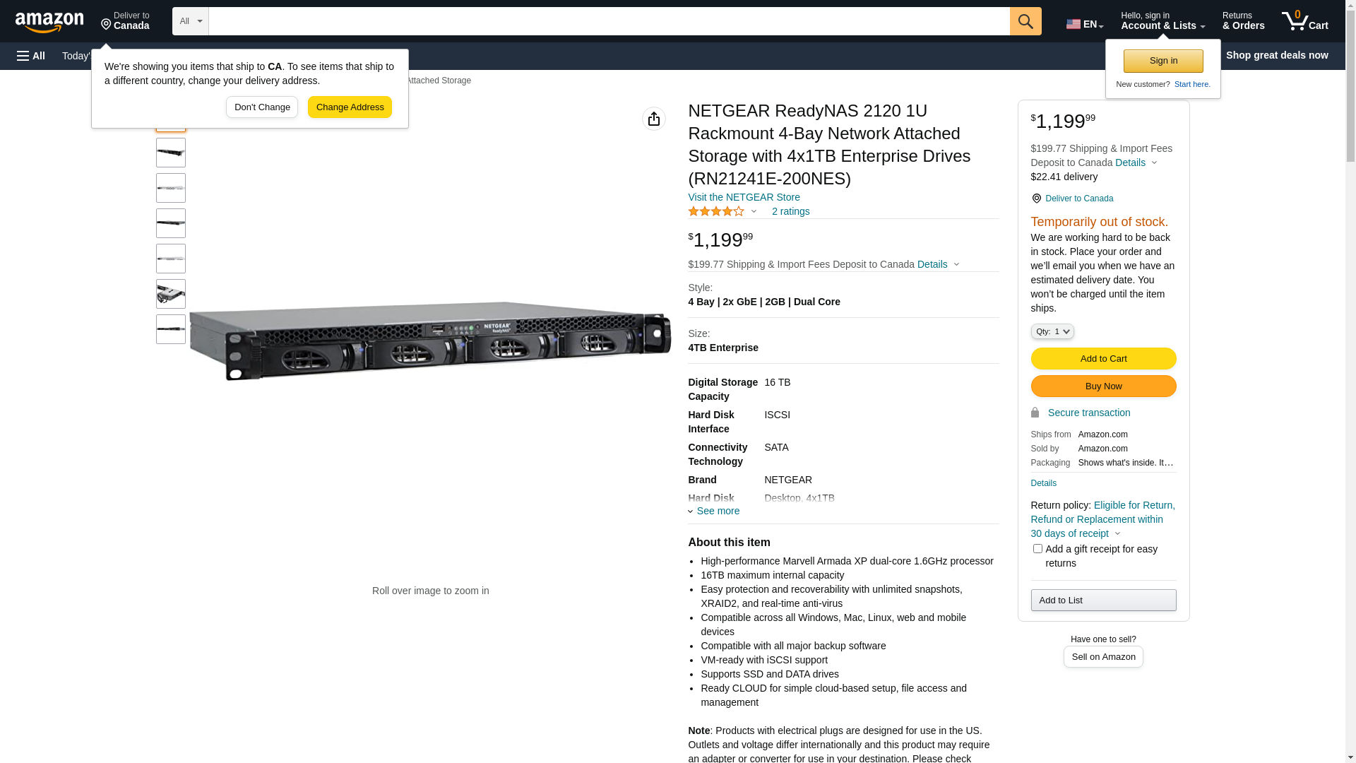 NETGEAR ReadyNAS 2120 1U Rackmount 4-Bay Network Attached Storage with 4x1TB Desktop Drives (RN21241D-200NES)