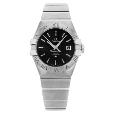 This new Omega Constellation 123.10.31.20.01.001 is a beautiful Womens timepiece that is powered by an automatic movement which is cased in a stainless steel case. It has a round shape face, date dial and has hand sticks style markers. It is completed with a stainless steel band that opens and closes with a push button double fold over. This watch comes with original box and papers. <br /> <ul> <li>Box: Yes</li> <li>Papers: Yes</li> <li>Brand: Omega</li> <li>Series: Constellation </li> <li>Model Number: 123.10.31.20.01.001</li> <li>Movement: Automatic Self Wind</li> <li>Gender: Womens</li> <li>Case Material: Stainless Steel</li> <li>Case Shape: Round</li> <li>Case Diameter With Crown: 34mm</li> <li>Case Diameter: 31mm</li> <li>Bezel Diameter: 31mm</li> <li>Case Thickness: 12mm</li> <li>Bezel Type: Fixed</li> <li>Bezel Material: Stainless Steel</li> <li>Crown: Pushdown</li> <li>Band Color: Steel</li> <li>Band Material: Stainless Steel</li> <li>Clasp Type: Push button double fold over</li> <li>Clasp Material: Steel</li> <li>Wrist Fit: 6.75 Inch</li> <li>Band Width: 19-14mm</li> <li>Display: Analog</li> <li>Dial Color: Black</li> <li>Hour Markers: Sticks</li> <li>Crystal: Sapphire</li> <li>Features: Date</li> <li>Stock Number: 13037</li> <li>Style: Luxury: Dress Styles</li> </ul>