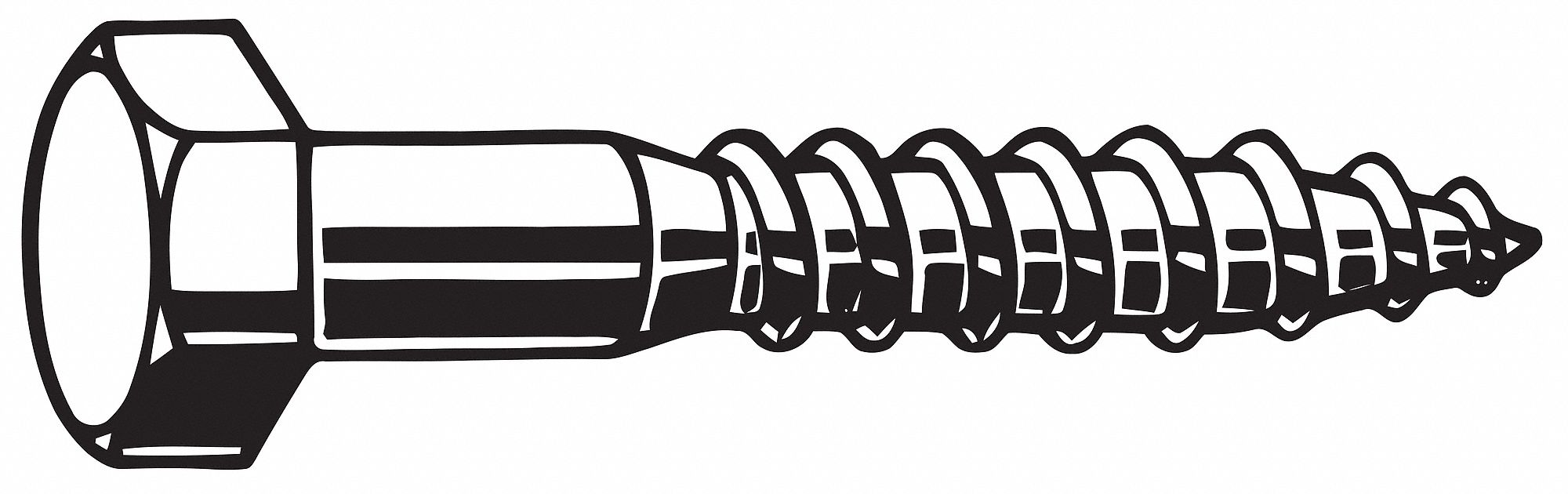 Hex Head Lag Screws, Material Steel, Finish Zinc Plated, Screw Size 3/8 In., Fastener Length 6 in, Threads per Inch 7, Thread Style Partially Threaded, Minimum Thread Length 3 19/32 in, Dimensional Standards ASME B18.2.1, Pack Size Bulk, System of Measurement Inch, Drive External Hex, Drive Size 9/16 in, Head Height 0.25 in, Head Style Hex, Head Width 0.388 in, Package Quantity 150