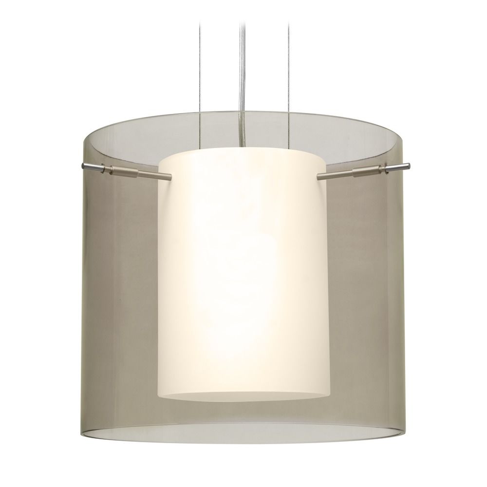 Besa Lighting (1KG-S18407-LED-SN) Pahu 12 Cable Pendant in Satin Nickel with Transparent Smoke/Opal Glass Décor