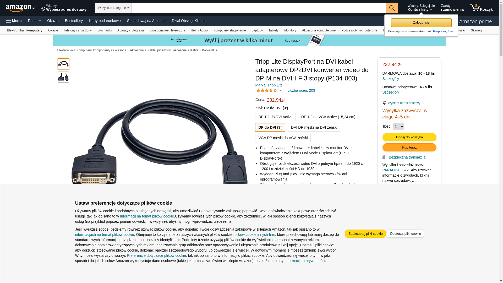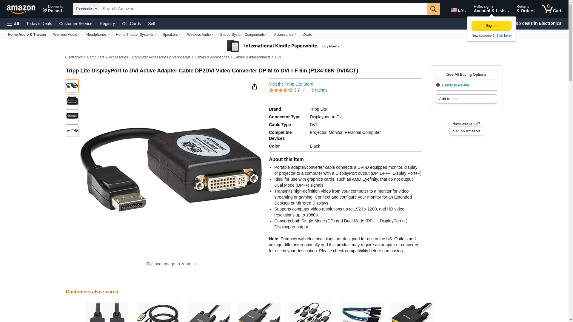 | Feature | Portable adapter/converter cable connects a DVI-D equipped monitor, display or projector to a computer with a DisplayPort output (DP, DP++, Display Port++) |