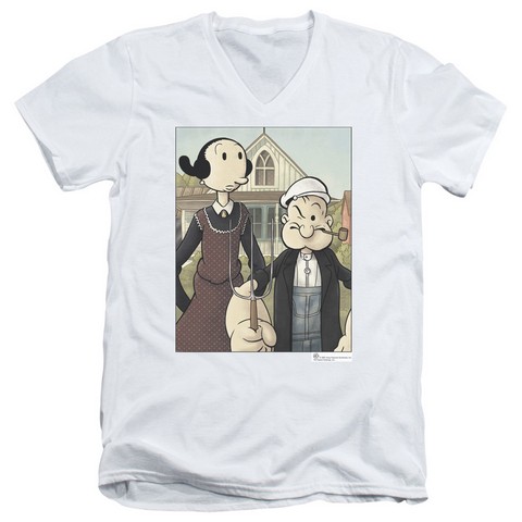 Trevco Popeye-Popeye Gothic Short Sleeve Adult 30-1 V-Neck Tee, White - Medium
