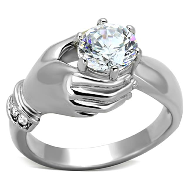 Alamode TK1230-10 Women High Polished Stainless Steel Ring with AAA Grade CZ in Clear - Size 10
