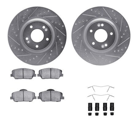 7512-03004, Rotors-Drilled and Slotted-Silver w/ 5000 Advanced Brake Pads incl. Hardware, Zinc Coat